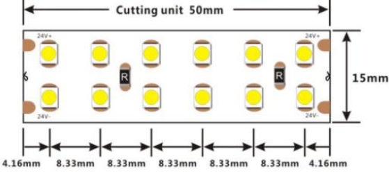 lighting, curved applications, edge lighting or furniture illumination.In this LED strip LEDs are